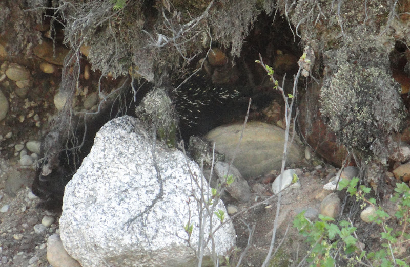 | This, and the next few pictures below, show the color of the ground - the very light covering that is actually Caribou Moss - very dry and crunchy, but we understand it is an important food source for the caribou herds that live in the region. |